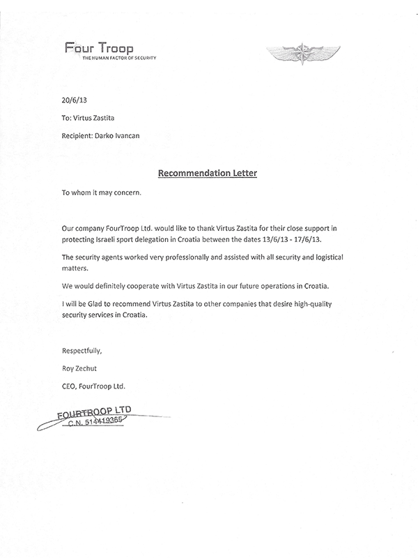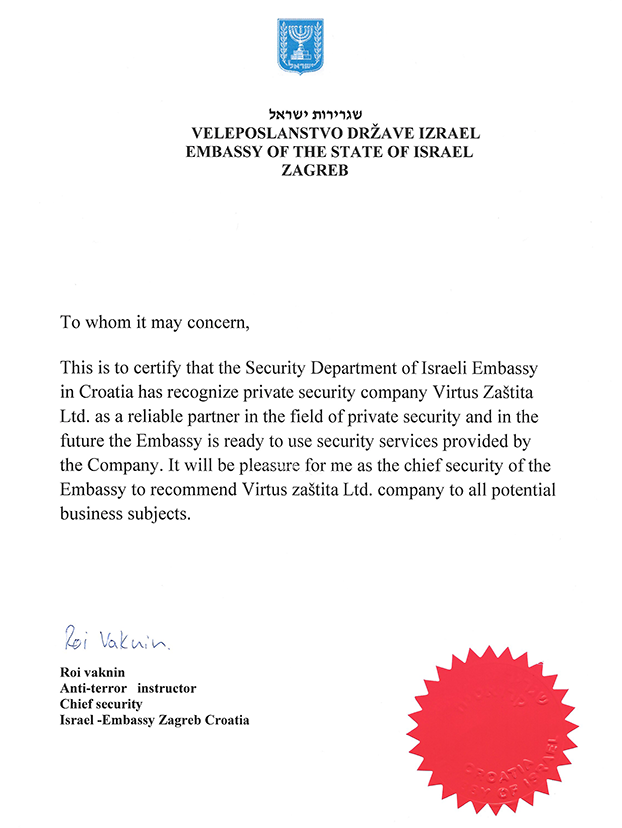 Želimo naglasiti da je VIRTUS ZAŠTITA u više navrata radila osiguranje Izraelske sportske reprezentacije u košarci, odbojci te vaterpolu koji su se natjecali u RH,